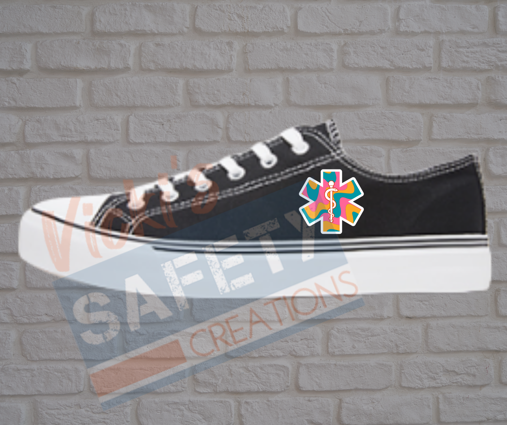 Comfortable canvas sneakers, made of breathable canvas upper and soft rubber synthetic sole. Lightweight and soft for all day wear. Roomy rounded toe. Non-slip sole prevents you from slipping so that you can walk even on slippery surfaces. Great for casual wear in house, at the office, shopping, driving, etc. We've added our Heath and Safety designs - making these themed footwear fun to wear during safety training, special events or conferences.