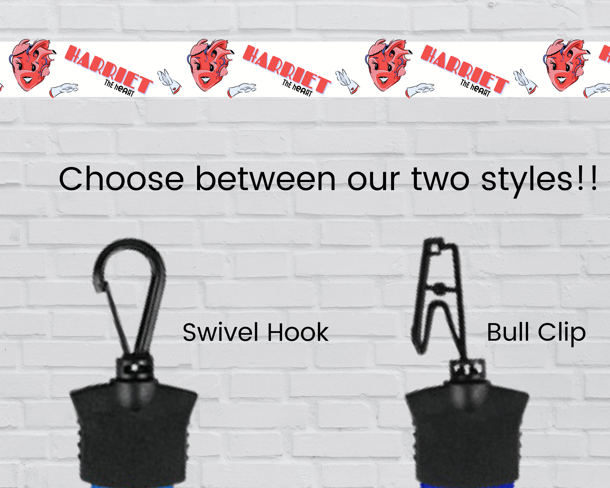 Custom made lanyards - perfect to hold your security cards or work ID's and keep them handy. Custom designed, sublimated, and assembled at our shop. Full color sublimation. Printed on both sides. 18" length. Made of polyester featuring the one of our designs sublimated on it in our shop. Choice between swivel hook or bull clip.