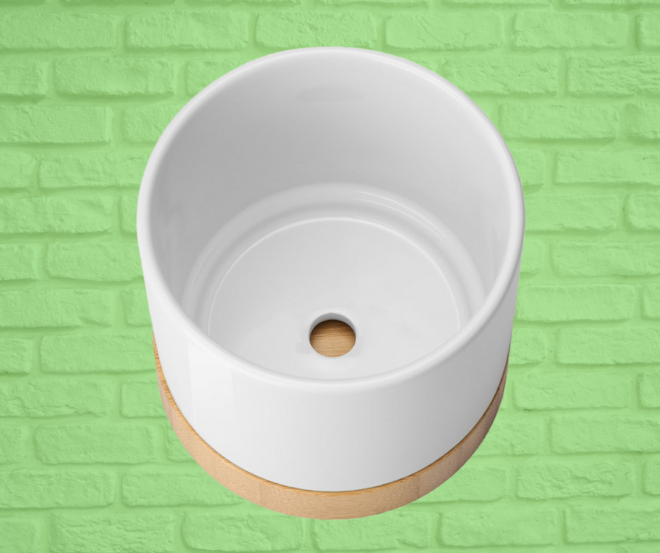 A sleek ceramic planter with Bamboo Tray Base is perfect addition to any desktop, side table, or any other place you'd like to display a plant (not included).The versatile planter is designed to complement any environment or gifting occasion. The attractive bamboo tray base provides an extra decorative surface as well as added functionality, catching any residual drips of water from the ceramic planter drainage hole. Works great for both living or fake plants.