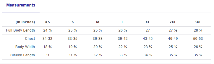 Runs small. Size up to ensure proper fit. To measure, zip coat before taking measurements.